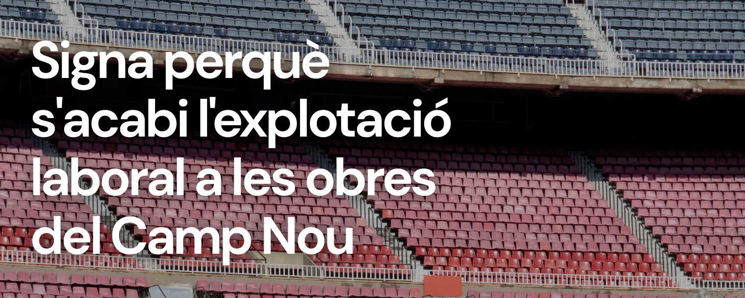 Signa perquè s'acabi l'explotació laboral a les obres del Camp Nou